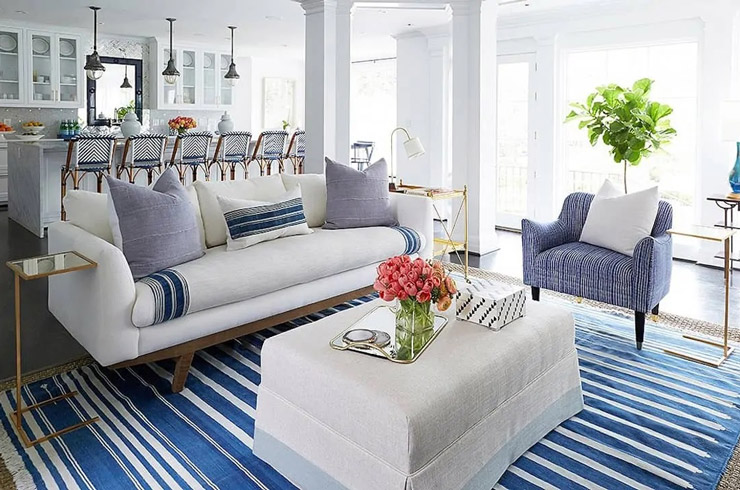 به گفته One Kings Lane، نوارهای آبی و سفید، هر دو برای نشیمن‌ها مناسب هستند و همچنین برای شیک به نظر رسیدن محیطکافی هستند. این نوع فرش‌ها برای هر خانه‌ای یک وسیله‌ای عالی محسوب می‌شوند.