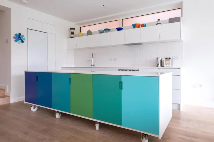 1. از مقداری رنگ آبی در کابینت‌ها استفاده کنید
