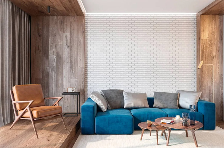 آبی یک رنگ مکمل عالی برای چوب و آجر است. اگر هر یک از این موارد را در آپارتمان خود در معرض دید دارید، می‌توانید با ترکیب کردن آنها با دکوراسیون آبی، ظاهری زیبا، دارای مرزبندی و شیک ایجاد کنید.