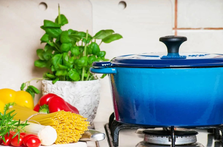 لازم نیست حتما مبلمان را تغییر رنگ دهید تا از آبی در دکوراسیون استفاده کنید. آبی می‌تواند به روش‌های دیگر نیز ظاهر شود. کتری به رنگ آبی وقتی رو گاز آب درون آن در حال جوشیدن است، گزینه مناسبی است. همچنین رنگ آبی در وسایل روی میز غذاخوری مانند زیر بشقابی، درست همان حسی را می‌دهد که در مبلمان شاهد این رنگ هستیم.