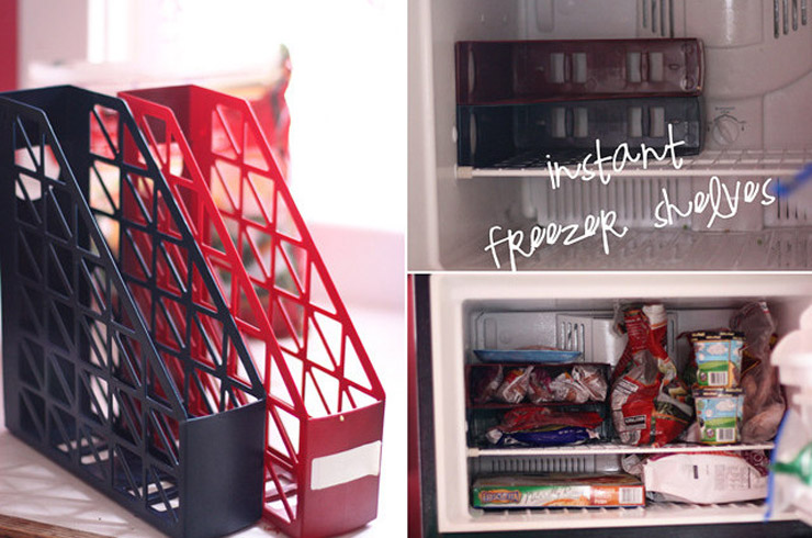 ۶- استفاده از نگه دارندههای مجله به عنوان قفسه در فریزر