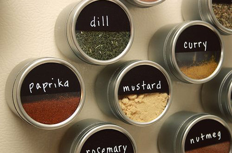 یک روش فانتزی برای نمایش ادویهها شما این است که آنها را به قالبهای ادویه مغناطیسی انتقال دهید و آنها را بر روی دیواره یخچال بچسبانید تا بتوانید به راحتی به آنها دسترسی داشته باشید. برای اینکه اطمینان حاصل کنید که چه چیزی درون آنهاست، بر روی هر کدام یک برچسب بچسبانید که روی آن نام هر ادویه نوشته شده باشد.