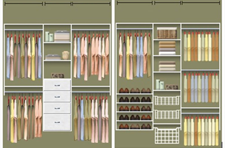 بیشتر کمدها دارای یک طرح کلی عمومی، مانند یک طبقه در بالا با یک میله برای آویزان کردن لباسها روی آن است. بیایید صادق باشیم؛ این طرح به درد کسی نمیخورد. این مدل کمدها، فضای استفاده نشده بسیاری دارند و برای کسانی مناسب هستند که لباسهای بلند زیاد دارند و همچنین جعبههای نظم دهنده را نیز در کمد خود دارند.